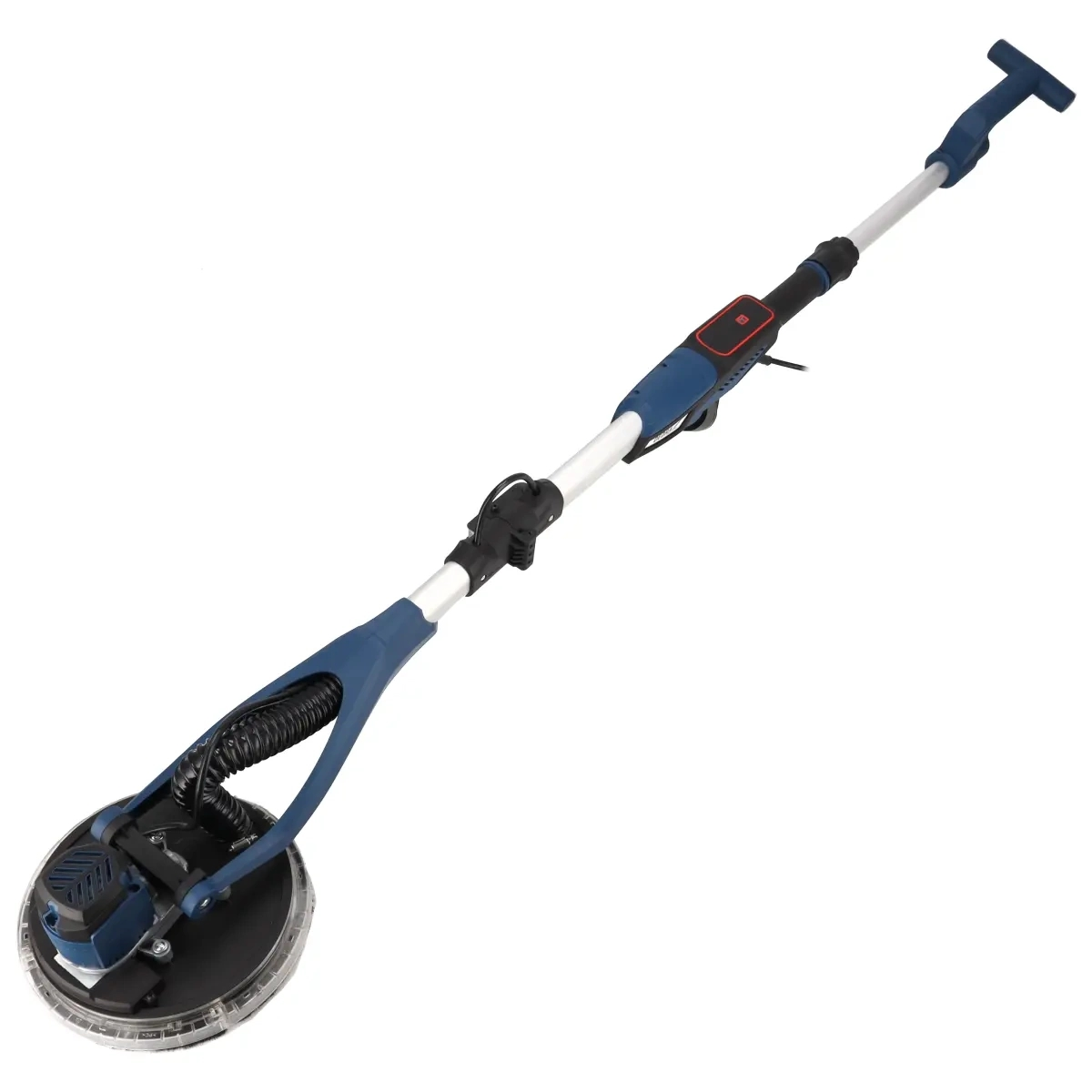 Bruska ramenová Dedra na sádrokarton 500W Technické údaje: průměr disku: Průměr kotouče: 225 mm regulace otáček: 900-2100 min-1 nastavitelná délka stroje: 120-205 cm flexibilní hadice: 450 cm lED osvětlení pohon kotouče přes převodovku automaticky nivelační brusná hlava pro snadné broušení stropu navíc v ceně: 6 ks brusných papírů kufřík na přenášení