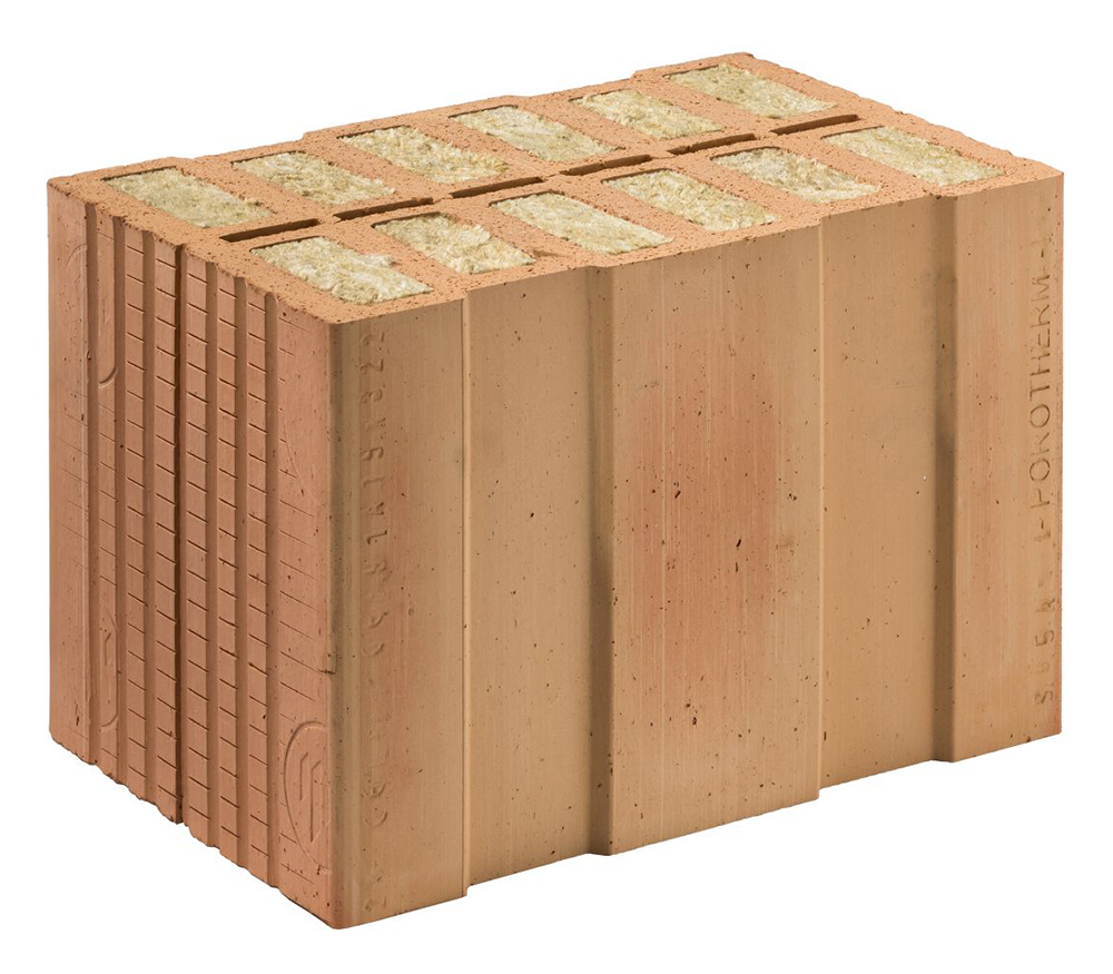 Broušený cihelný blok s minerální izolací s vyšší únosností pro tl. stěny 38 cm na maltu pro tenké spáry.