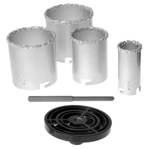 korunka vykružovací - sada 6 ks korunka s karbidovým ostřím pro čisté a přesné vrtání průměry korunek: 33; 53; 67; 73 mm univerzální ALU unašeč speciální vodící vrták