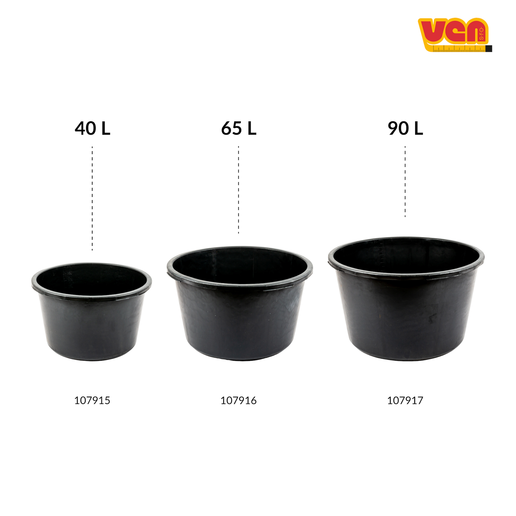 - odolná plastová nádoba - objem: 65 litrů - výška: 34 cm - průměr v horní části: 55 cm - průměr v dolní části: 45 cm - s měrkou - 100% recyklát z LDPE - vyrobeno v EU