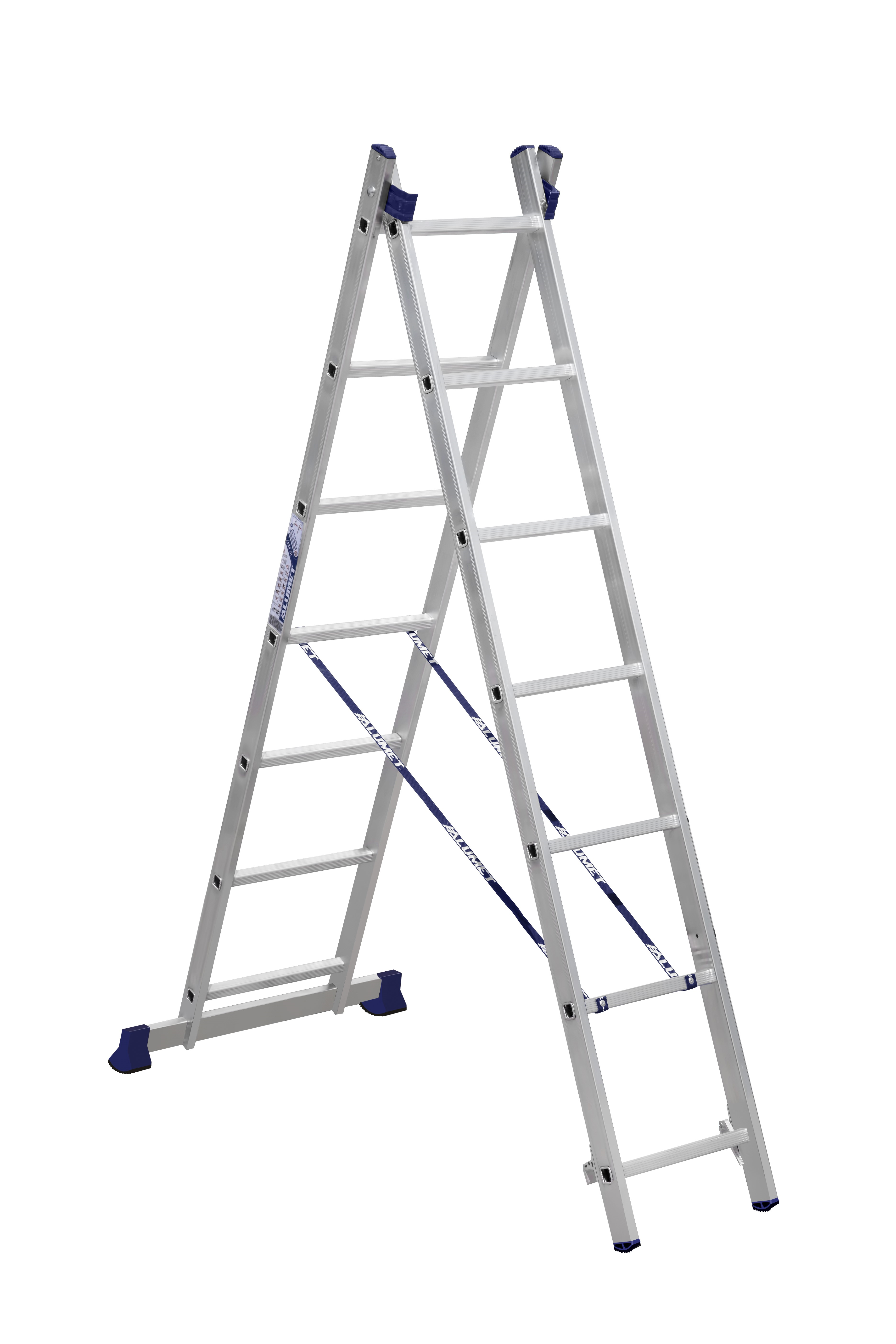 Alumet, univerzální 2-dílný žebřík, 2x7 příček, 33 x 197 cm, max. 150 kg, 5 let záruka Vysoce kvalitní, stabilní, univerzální 2-dílný žebřík se stabilizační nohou pro využití v běžné domácnosti, ale i pro profesionální řemeslníky. Žebřík má 7 příček a normovaný dosah ze žebříku je až 287 cm. Díky faktu, že je žebřík vyroben z kvalitního hliníku, je velmi lehký a manipulace s ním je velmi jednoduchá. Váha žebříku je 6,9 kg. Žebřík je vyroben v Evropě. Certifikována německou certifikační laboratoří TÜV